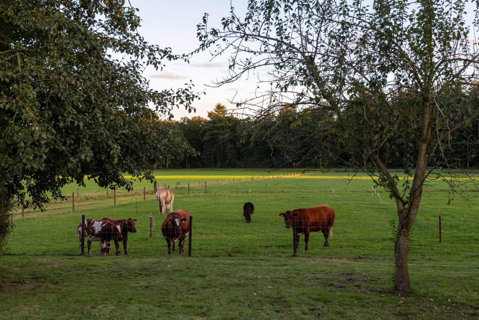 Vanaf het terras kijkt u uit over onze weilanden met grazende koeien en pony’s, met daarachter de bosrand van het Vechtdal. Hier ervaart u stilte, comfort en ontspanning — het hele jaar door.
